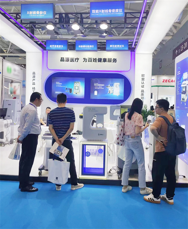 在這場(chǎng)醫(yī)療科技的盛宴中,品源醫(yī)療以其非凡的創(chuàng)新實(shí)力和精湛品質(zhì),成為了展會(huì)中的一顆璀璨明珠。此次展出的雙能X射線骨密度儀、超聲骨密度檢測(cè)儀、X射線骨齡儀、動(dòng)脈硬化檢測(cè)儀以及肺功能測(cè)試儀系列產(chǎn)品,憑借著檢測(cè)精準(zhǔn),人性化的設(shè)計(jì)理念以及舒適、便捷的檢測(cè)體驗(yàn),吸引了眾多國(guó)內(nèi)外客商和專業(yè)人士的目光。