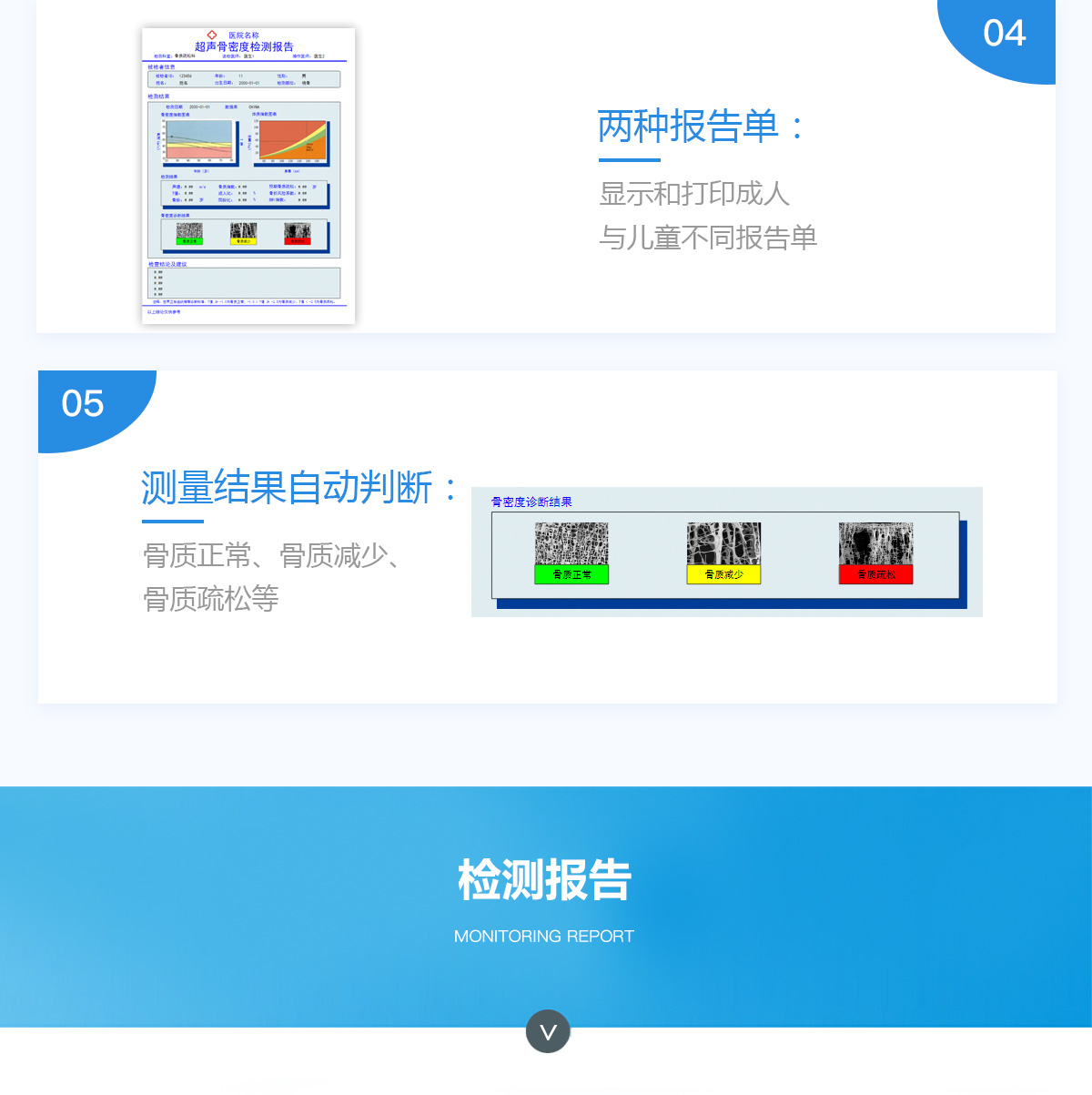 ■ 軟件優(yōu)勢::BMD-A系列超聲骨密度檢測儀一臺儀器裝配有智能分析系統(tǒng),經(jīng)濟(jì)實(shí)用??蓽y量0-100歲人群。